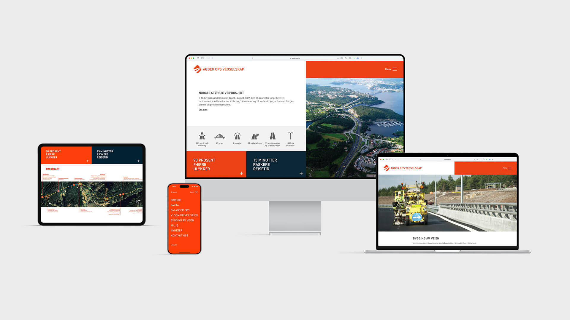 Agder OPS Vegselskap står bak byggingen (2006) og driften av E18-strekningen mellom Kristiansand og Grimstad. Vi har vært med på reisen siden starten og har levert visuell identitet og alt av grafisk materiell for selskapet. Gjennom en helhetlig visuell identitet har vi bidratt til å styrke deres kommunikasjon og merkevare.
