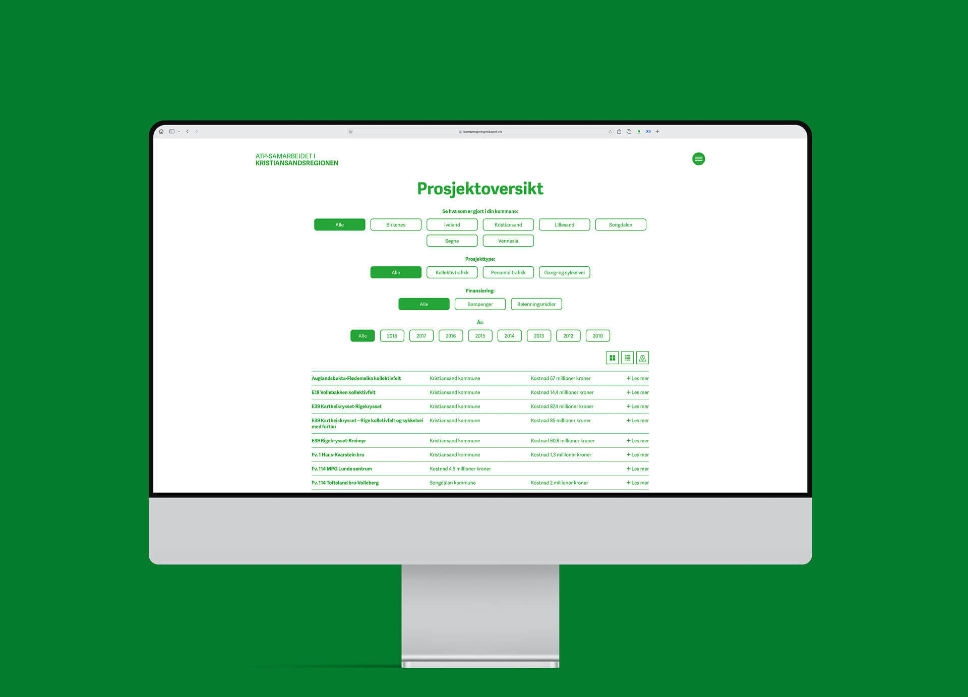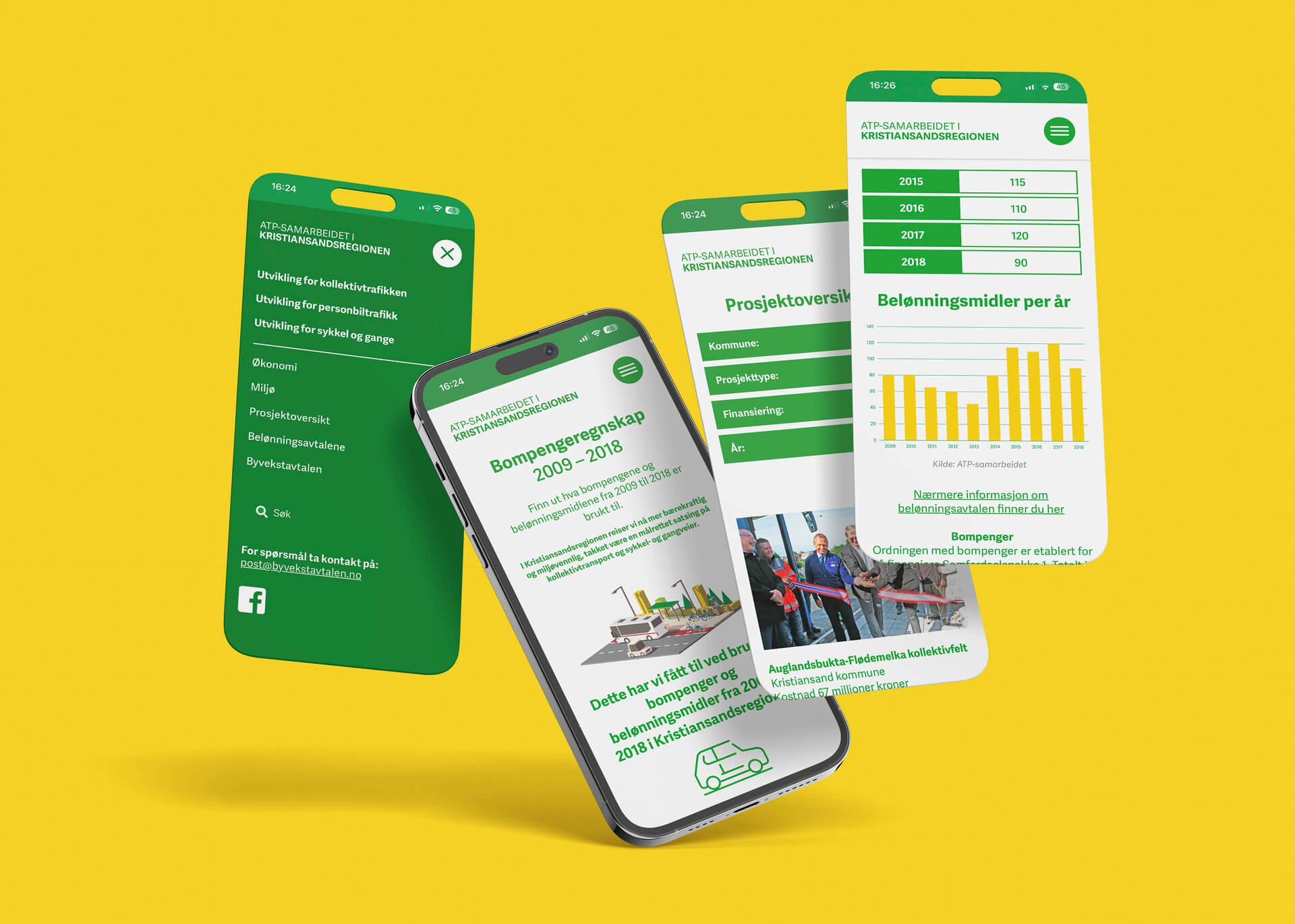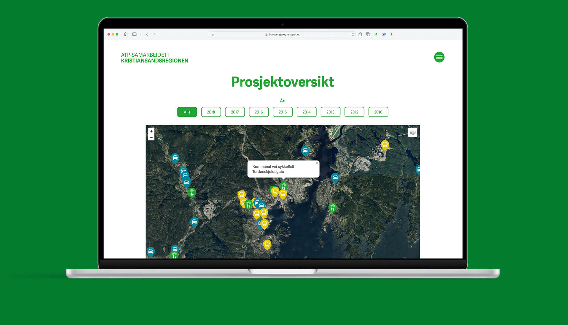 Bompengeregnskapet var en informativ nettside som ga en detaljert oversikt over hvordan bompenger og belønningsmidler ble brukt i Kristiansandsregionen fra 2009 til 2018. Her kunne du se hvordan midlene hadde bidratt til bedre kollektivtransport, nye sykkelveier, innfartsparkering og andre trafikksikkerhetstiltak. Målet var å skape åpenhet rundt bruken av bompengemidler og vise hvordan investeringene hadde bidratt til en mer bærekraftig og effektiv transportløsning.