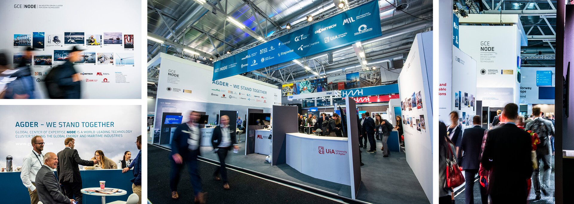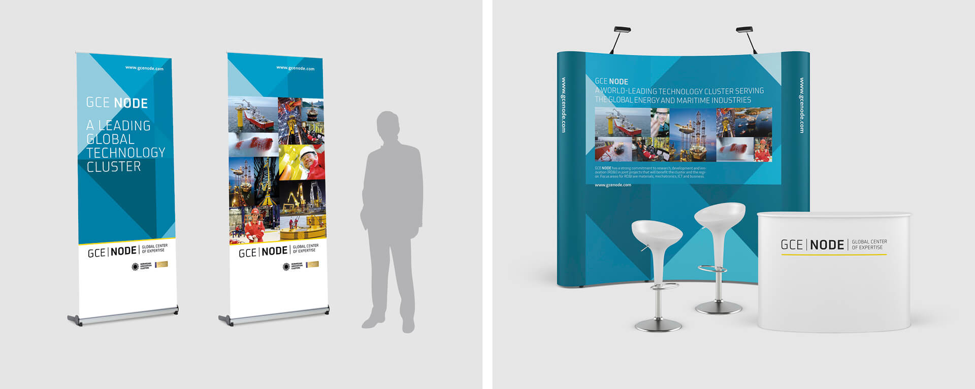 GCE NODE er et samarbeidsnettverk av bedrifter, forskningsmiljøer og offentlige aktører som jobber innen teknologi, energi og mekanisk industri, særlig rettet mot offshore-, maritim- og energisektoren. Vi har designet deres visuelle identitet, og har i flere år utformet messestands for dem.
