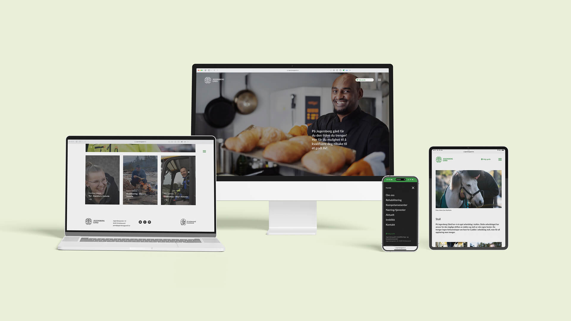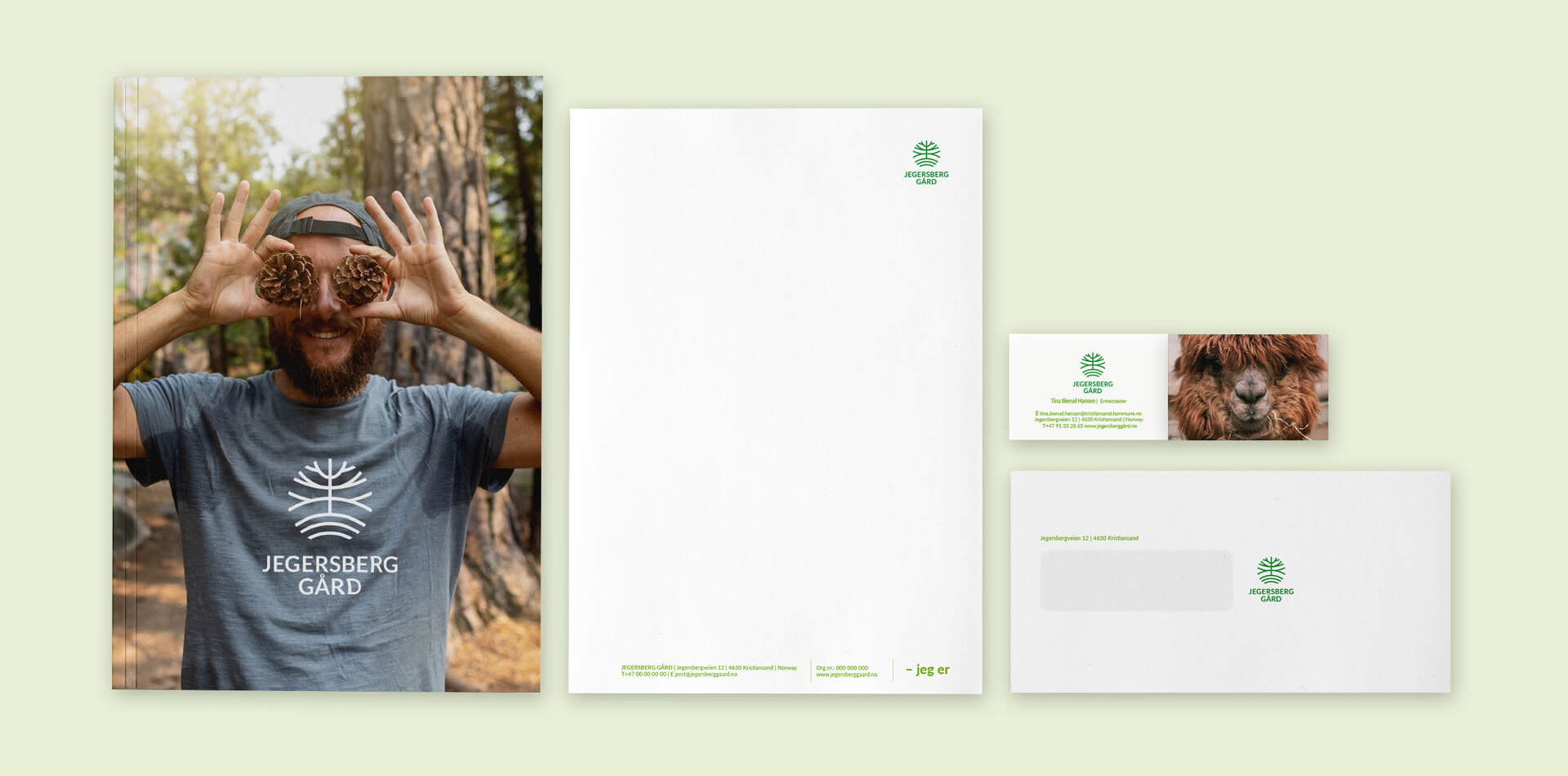 Jegersberg gård er et rehabilitering- og kompetansesenter for rusavhengige i Kristiansand kommune. Gården jobber etter en italiensk modell som baserer seg på fire elementer: tid, fellesskap, mentorering og kvalifisering. Her får man den tiden man trenger for å komme tilbake et godt og verdig liv. Vi har designet en helhetlig visuell identitet og en nettside som gjenspeiler gårdens verdier og mål.