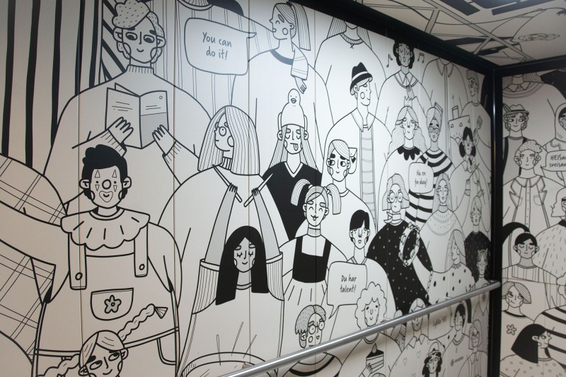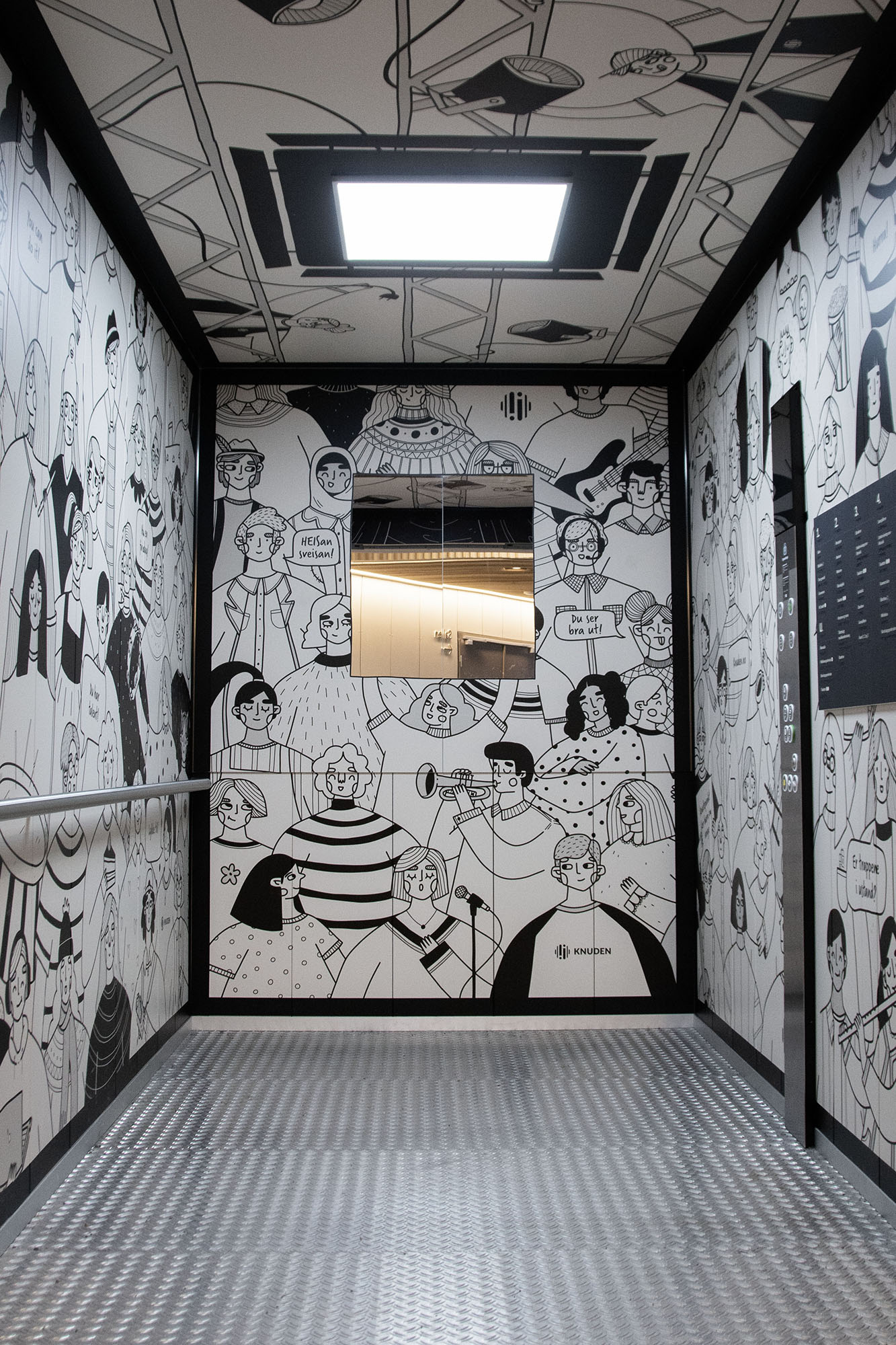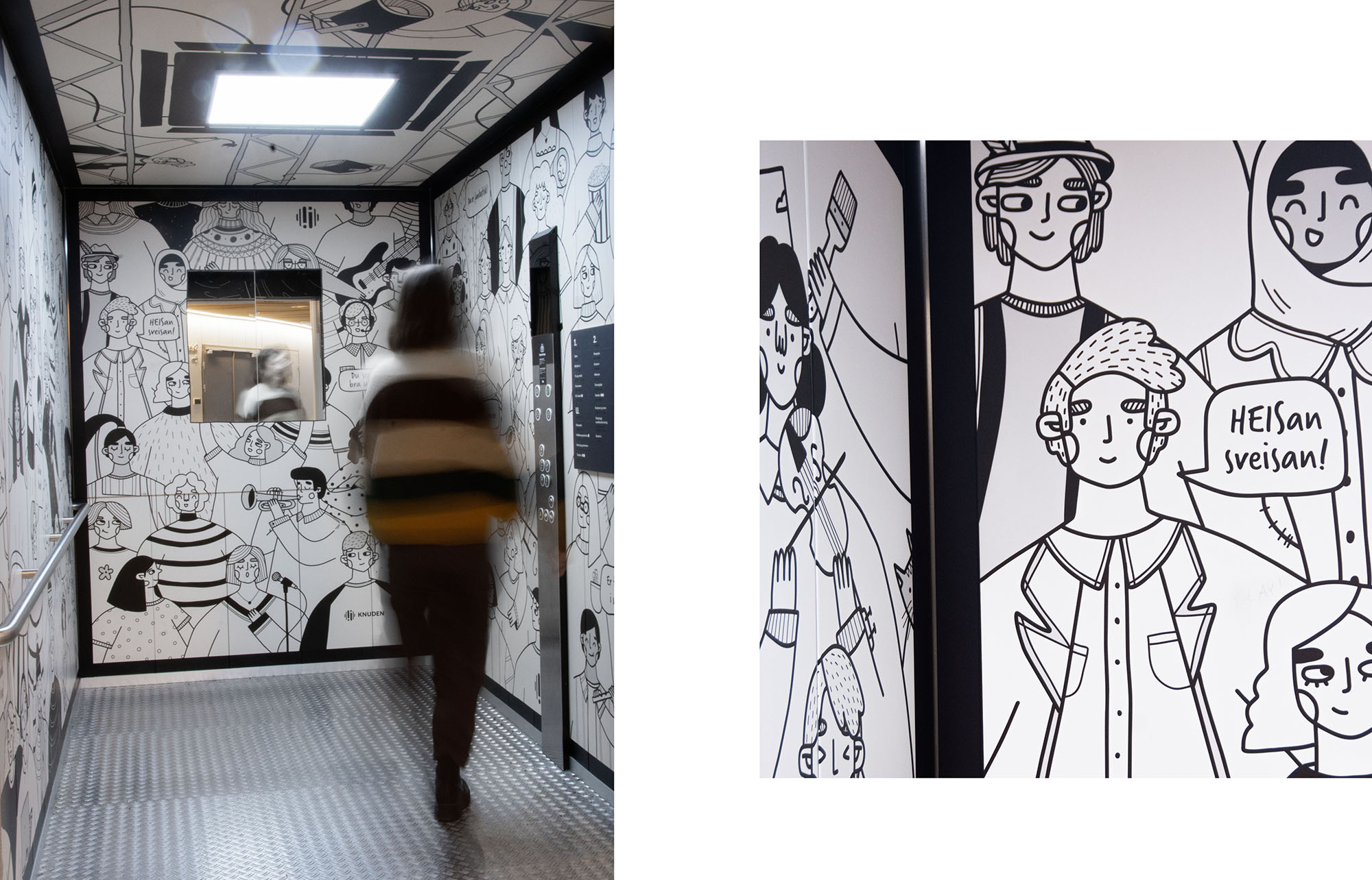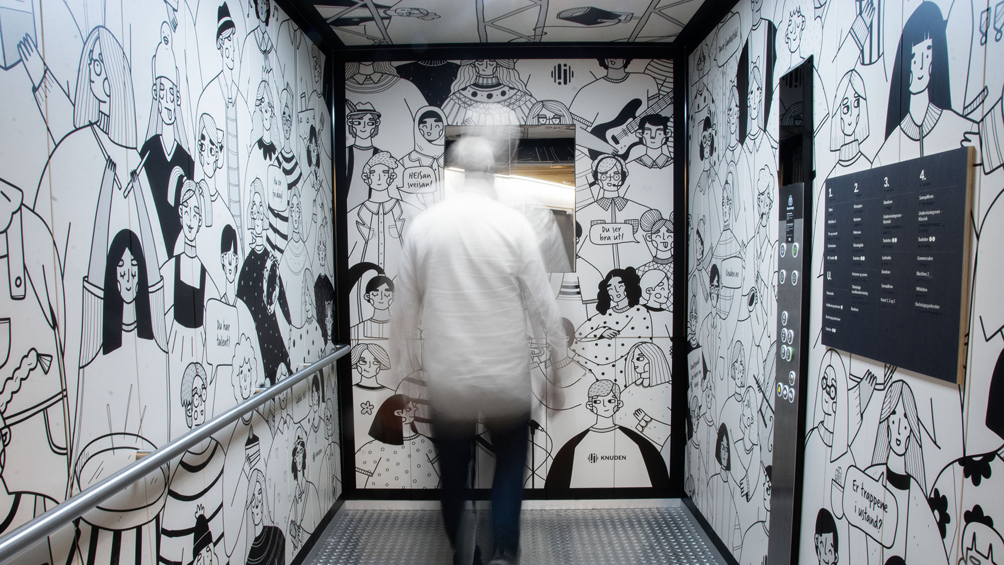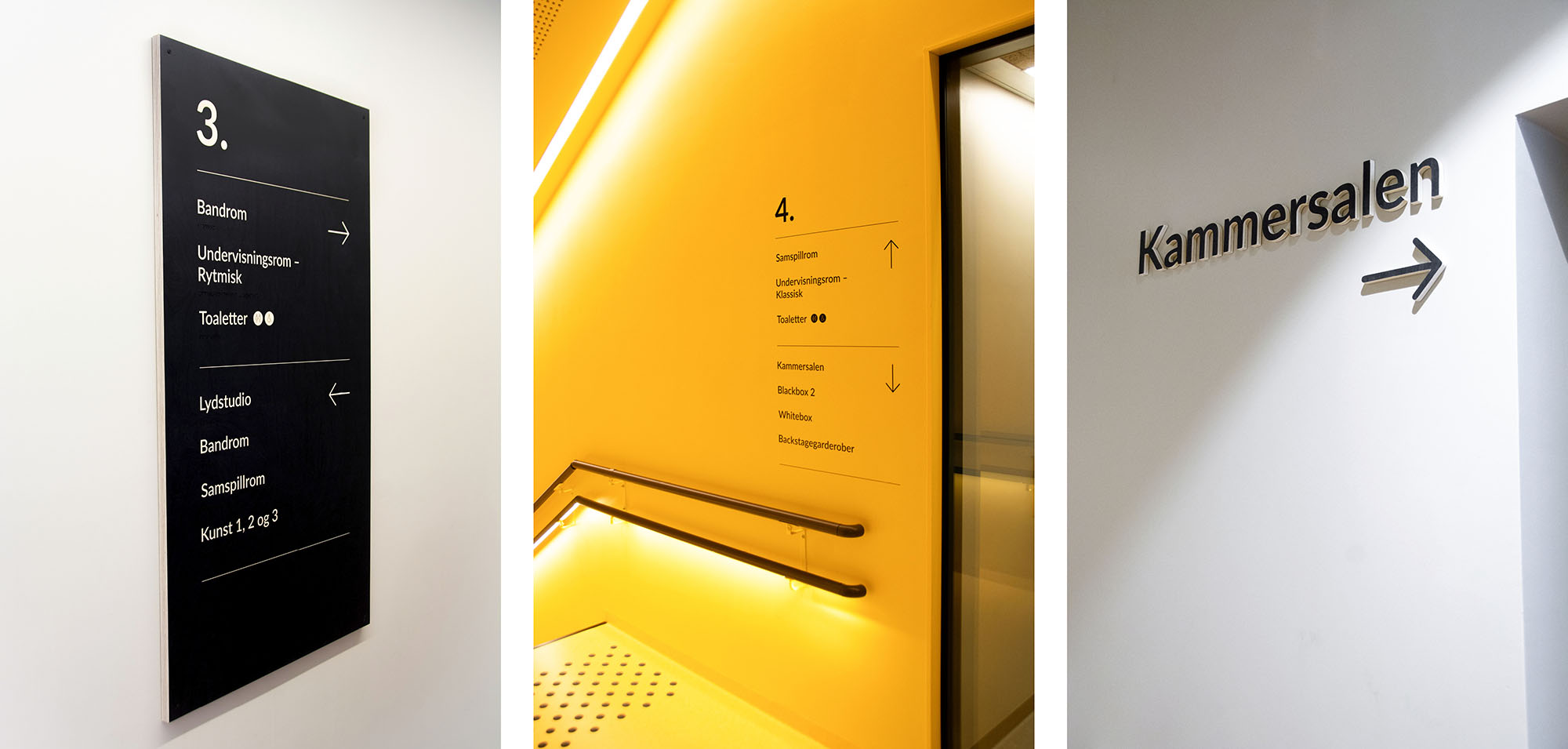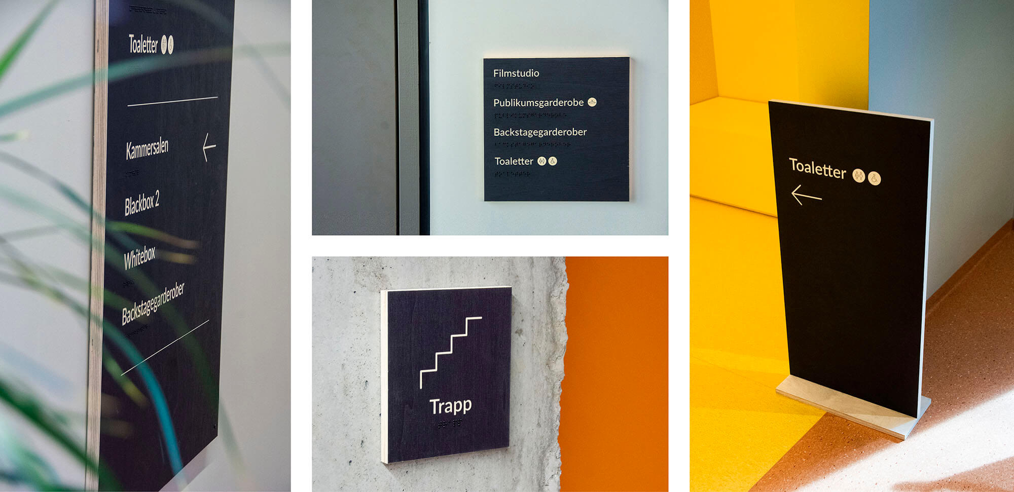 Da Knuden skulle flytte til Silokaia i Kristiansand i 2022 fikk vi oppdraget med å skilte og utsmykke det nye bygget. Dette omfattet alt fra utendørsskilt og vindusdekor til innendørsskilt og veifinning. Vi utviklet et ikonsett og valgte materialer som formidler både varme og tydelighet. Finerplatene brukt innendørs gir skiltene en levende overflate og et spennende uttrykk på kantene.