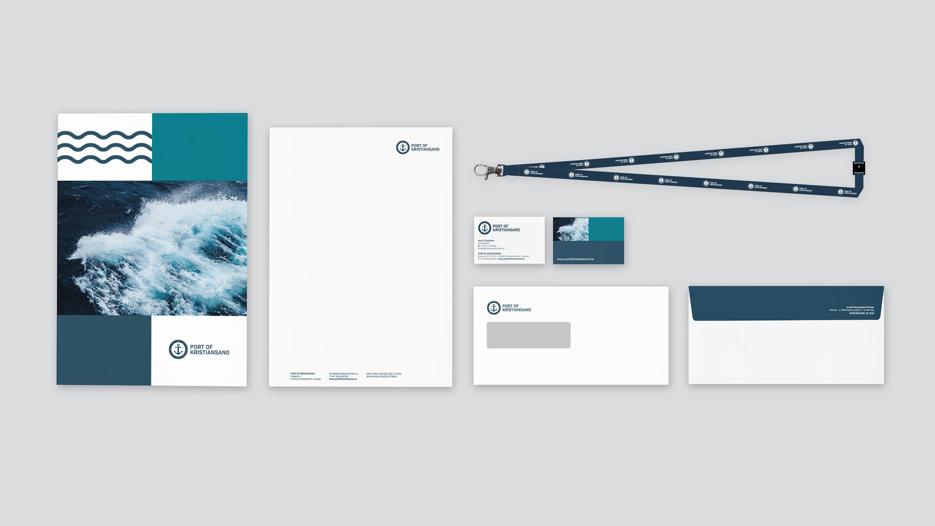 Vi har utviklet den visuelle identiten til Kristiansand Havn. Profilen kombinerer maritime elementer med et friskt og tydelig uttrykk, og gir havnen et helhetlig og gjenkjennelig visuelt særpreg.