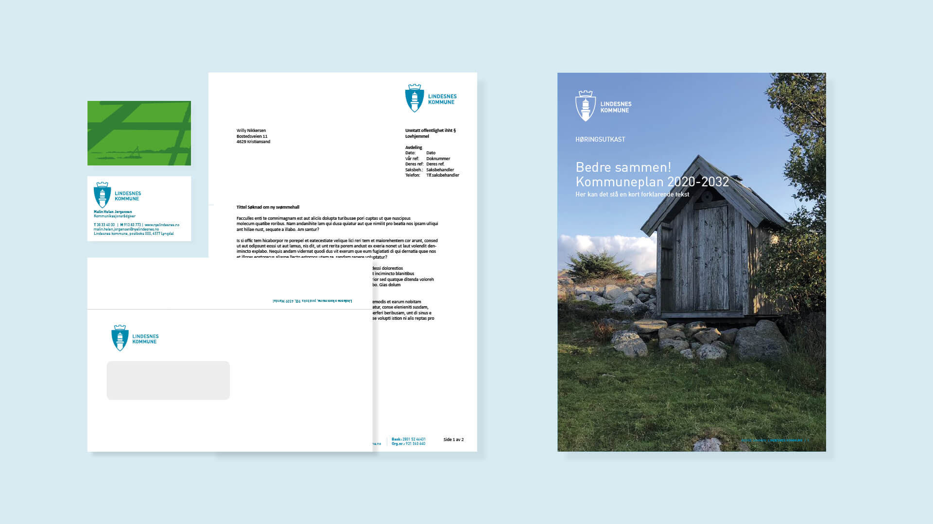 Vi utarbeidet en ny visuell profil for Lindesnes kommune i forbindelse med sammenslåingen av Mandal, Marnardal og Lindesnes i 2020. Profilen tar vare på sentrale symboler fra alle tre kommuner og styrker opplevelsen av fellesskap. Med tydelige farger, foto og seks grafiske mønstre fremstår kommunen helhetlig – fra hav til hei.