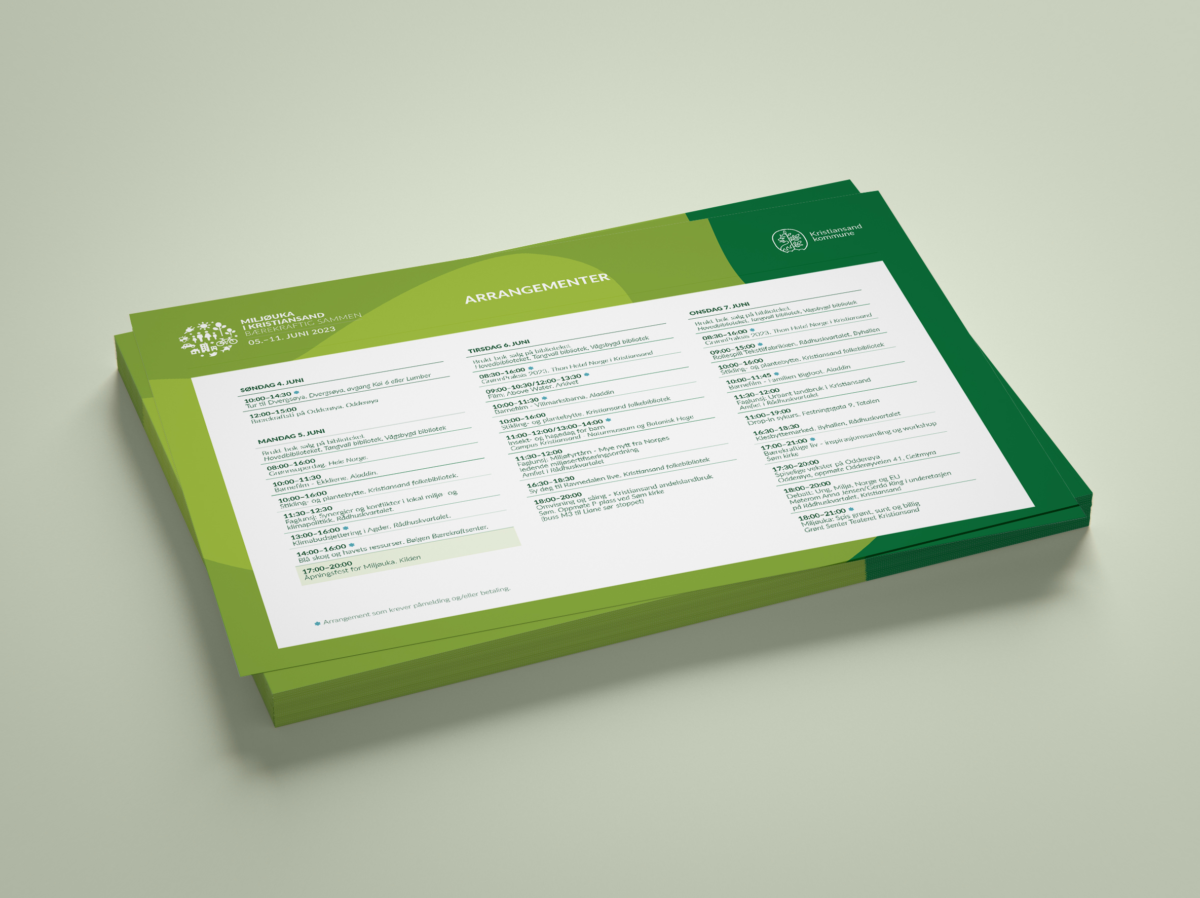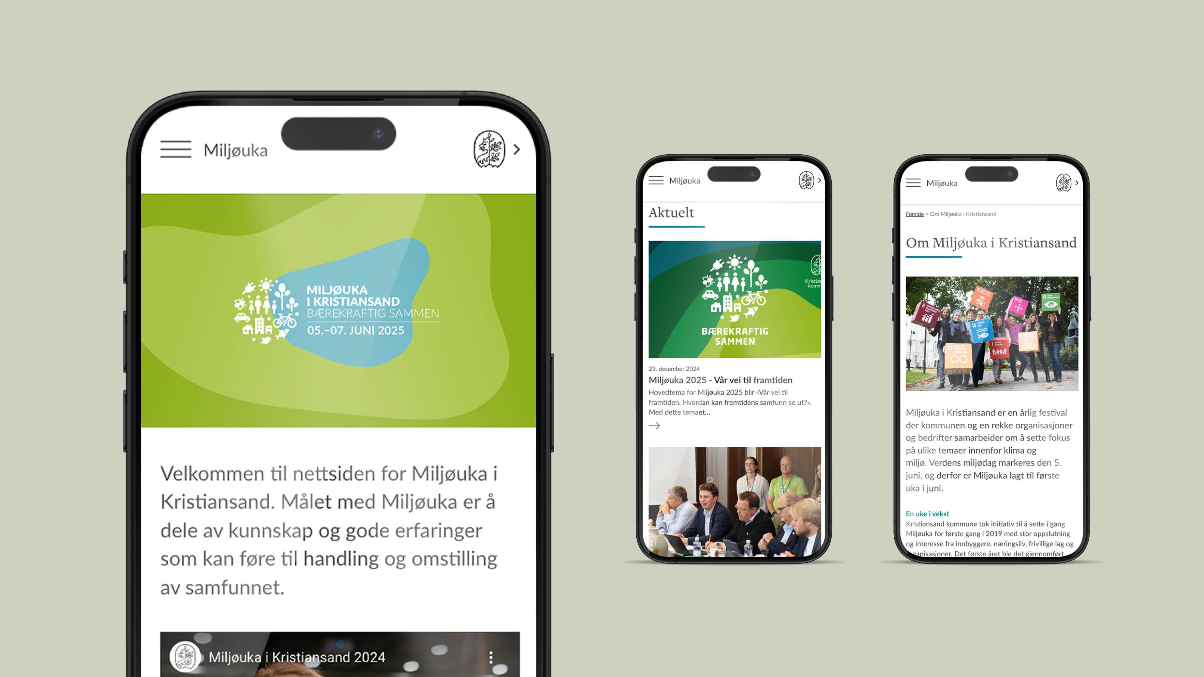 «Miljøuka» er Kristiansand kommunes årlige arrangement hvor målet er å dele kunnskap og gode erfaringer som kan føre til handling og omstilling av samfunnet. Miljøuka handler om å være bærekraftig sammen - skape fellesskap, tilhørighet og framtidstro. Gjennom foredrag, verksteder, kurs, utstillinger, seminarer og aktiviteter for både store og små, utforskes løsninger for en mer bærekraftig kommune.