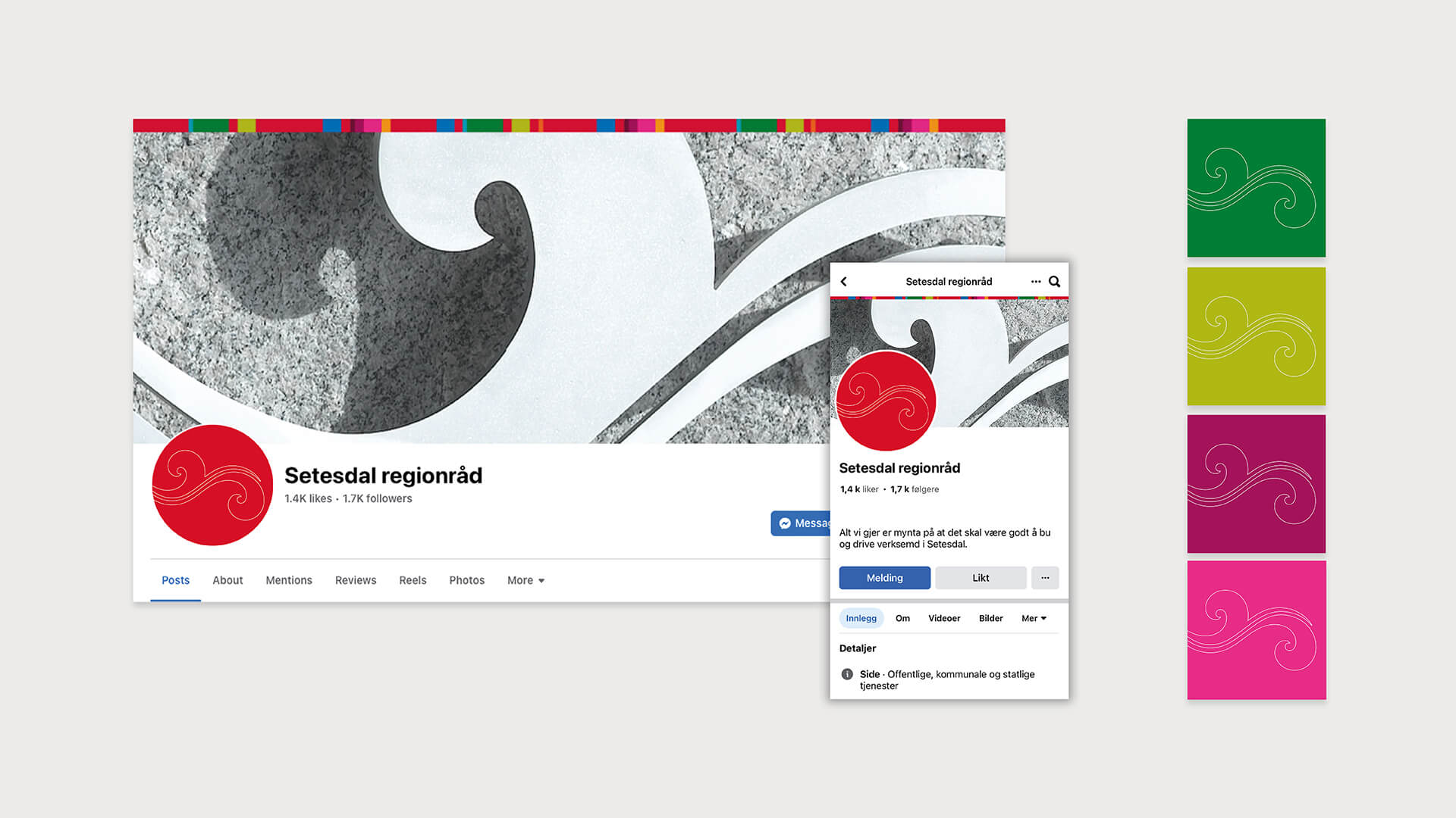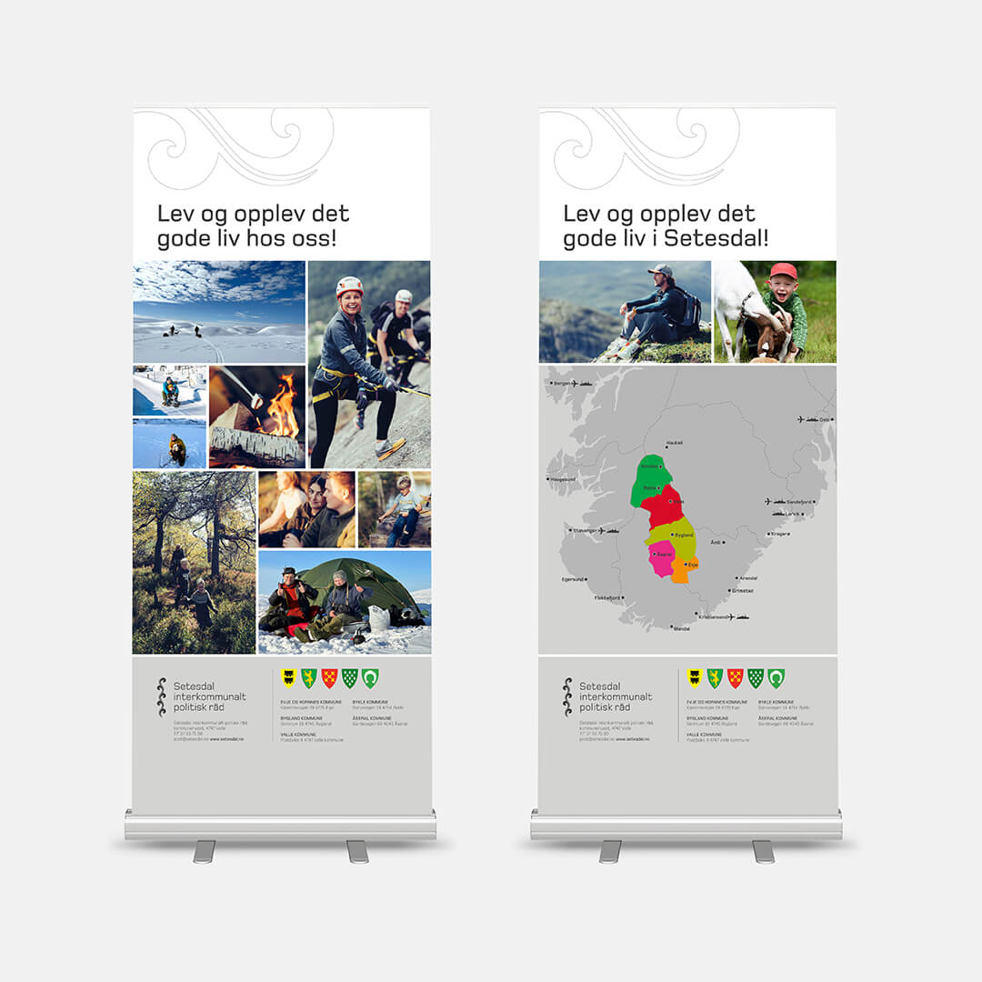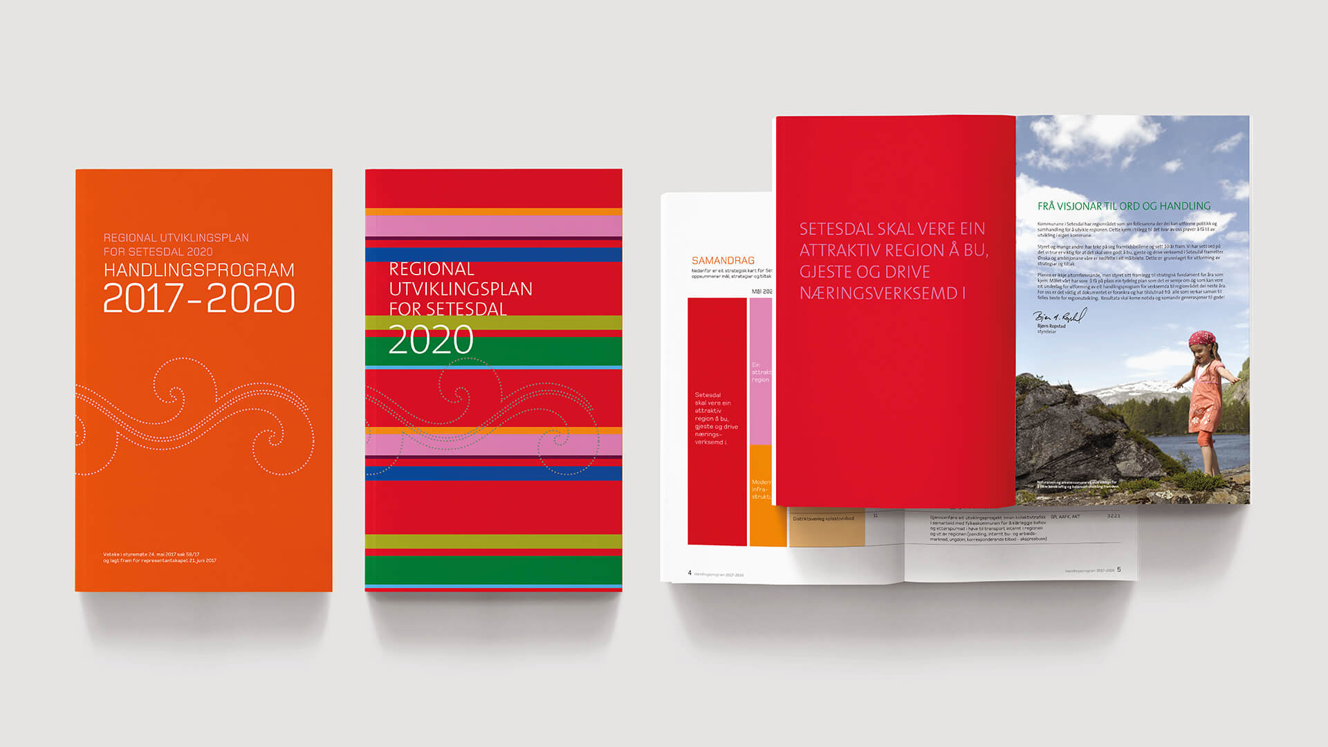 Setesdal interkommunale politiske råd (IPR) er et interkommunalt samarbeid mellom kommunene Evje og Hornnes, Bygland, Valle, Bykle og Åseral, som har som formål å utvikle Setesdalsregionen. Vi har laget en profil rundt symbolet de hadde fra før, med en rik fargepalett som er inspirert av fargene fra Setestalsbunaden, fonter og en helhetlig profil. Vi har samarbeidet med Setesdal IPR og tidligere Setesdal regionråd i en årrekke.